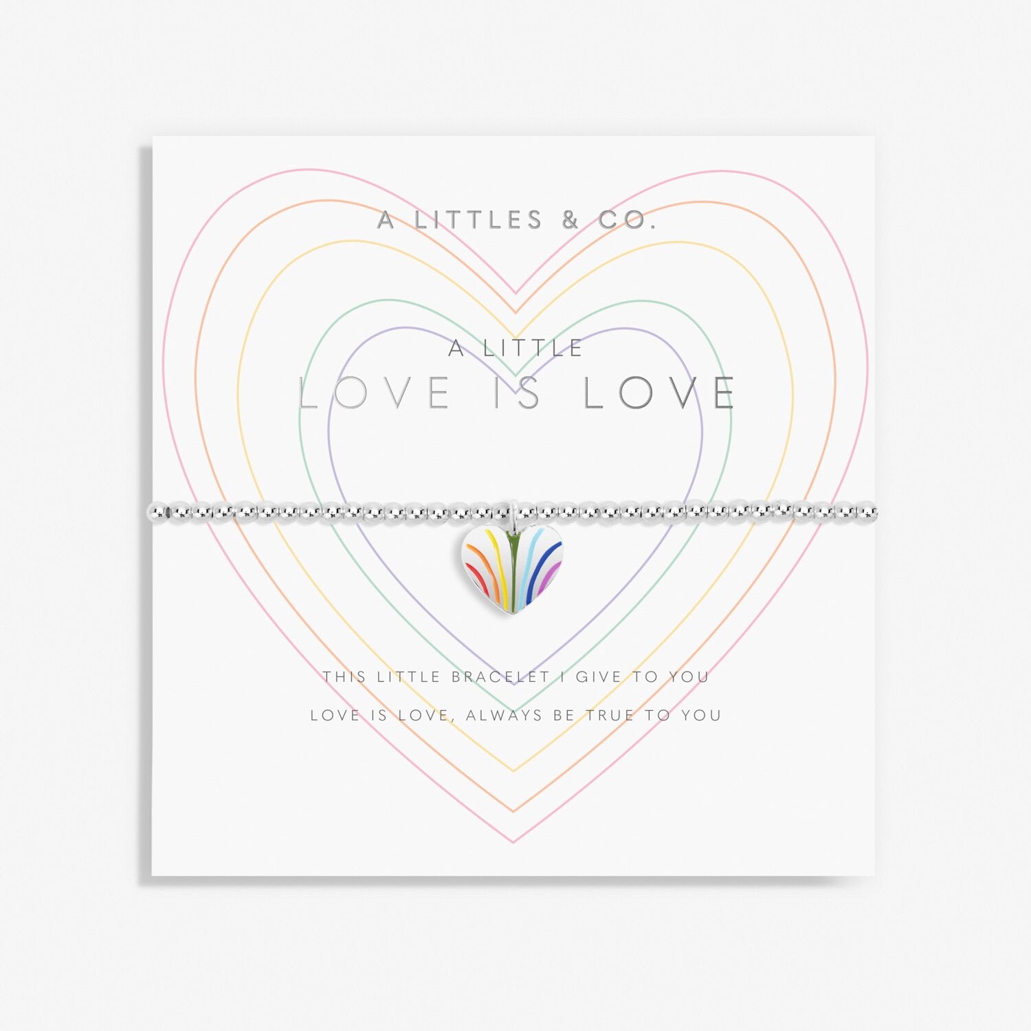 Say hello to one of the sweet sentiments in our world-famous A Little Collection! Our A Little 'Love Is Love' Bracelet In Silver Plating features a captivating stretch design and a rainbow heart-shaped charm. Wrapped around one of our stylized cards and framed with a sweet sentiment, this piece is sure to make a standout gift and a wonderful addition to your loved one's collection.