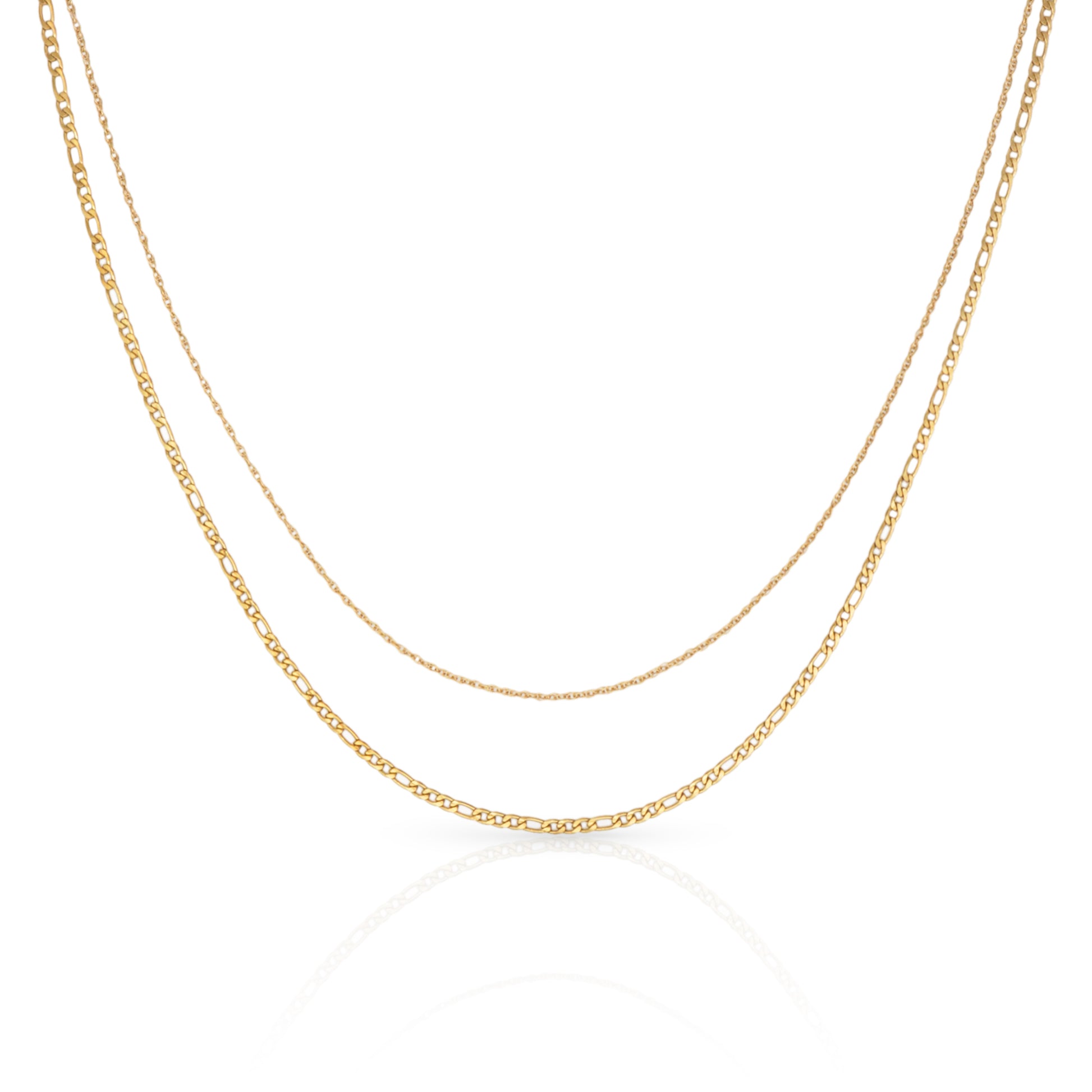 A double duty necklace that sets a tone of ease and sophistication. Made with PVD and stainless steel, you can wear this waterproof layered necklace anywhere.
