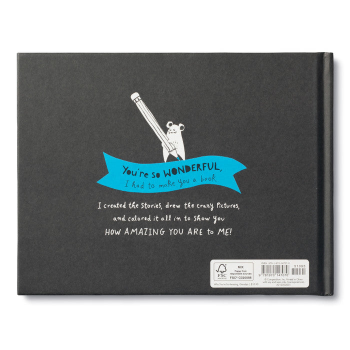 Celebrate how incredible Grandpa is with the wild and wonderful prompts in this keepsake fill-in book. From creating stories to drawing pictures to selecting superlatives, every spread invites kids to express their unique personality, unleash their imagination, and show Grandpa their love. Once complete, Grandpa will have the most incredible gift that reflects just how amazing he is in his grandchild’s eyes.