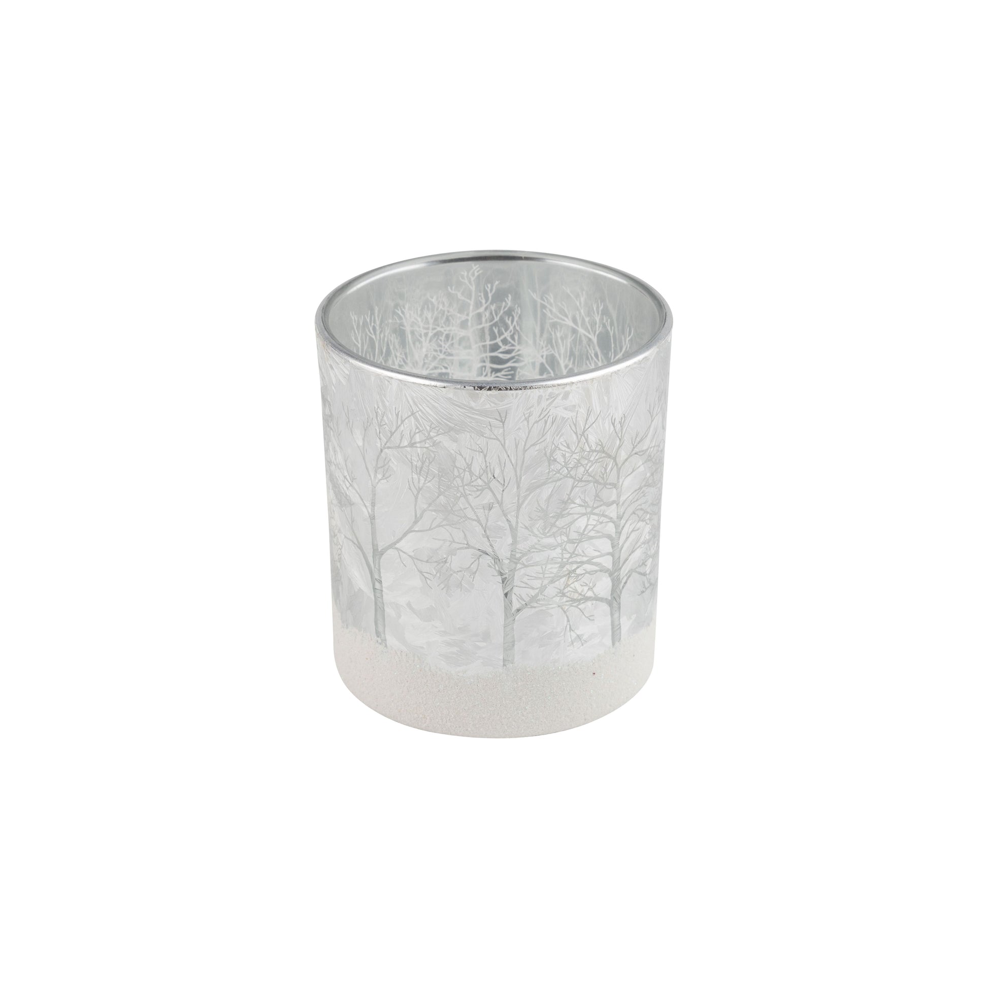 Illuminate your holiday décor with our winter themed glass candle holders. Featuring a frosted silver exterior with a festive tree motif, these candle holders come in 2 sizes: 3" for tea lights and 4" for votives. Create a warm and inviting atmosphere while adding a touch of elegance to your Christmas celebrations.