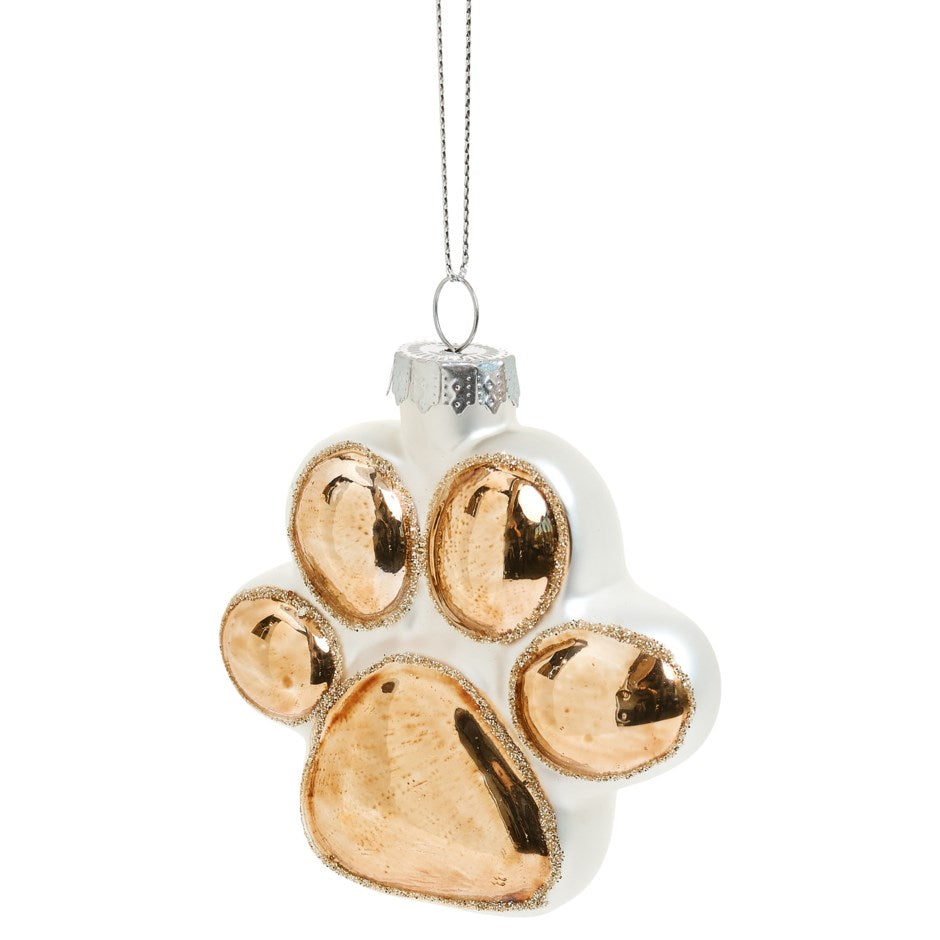 This lovely brown glass ornament features a paw design measuring 2x3 inches. Perfect for dog lovers, it adds a touch of whimsy to any holiday décor. Crafted with high-quality materials, it is a durable and stylish addition to your Christmas tree.