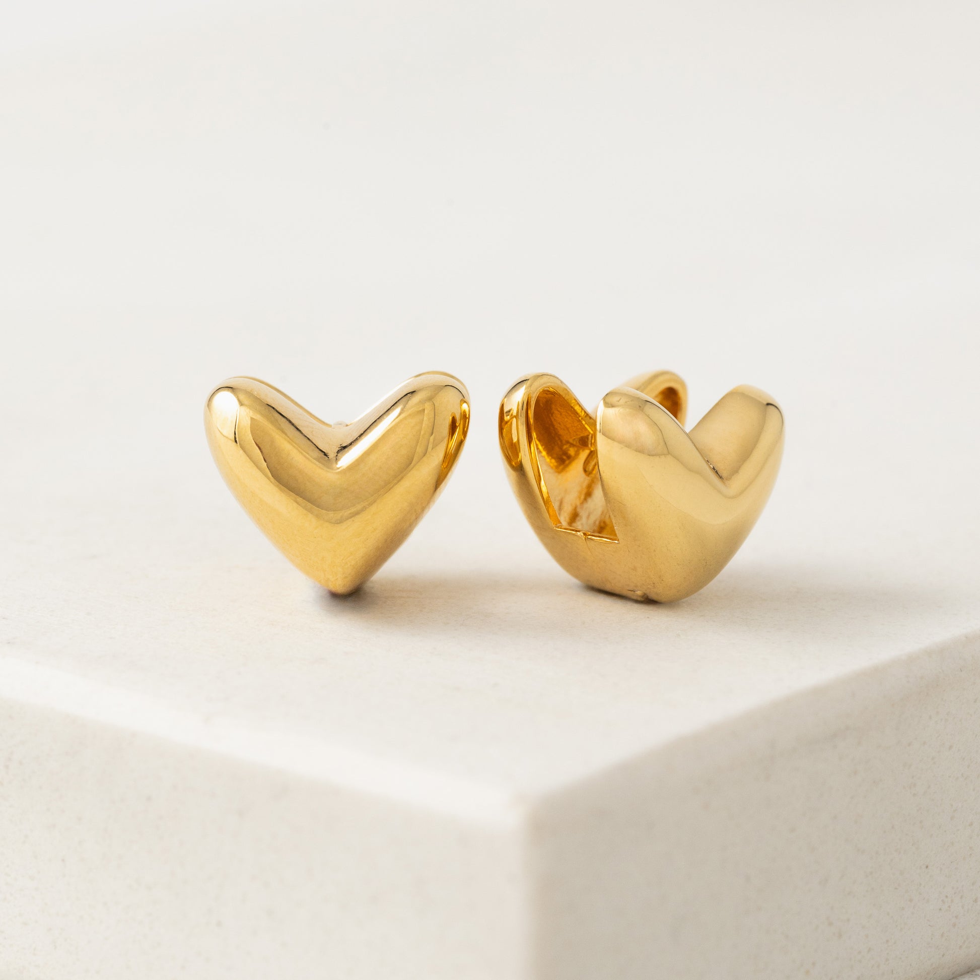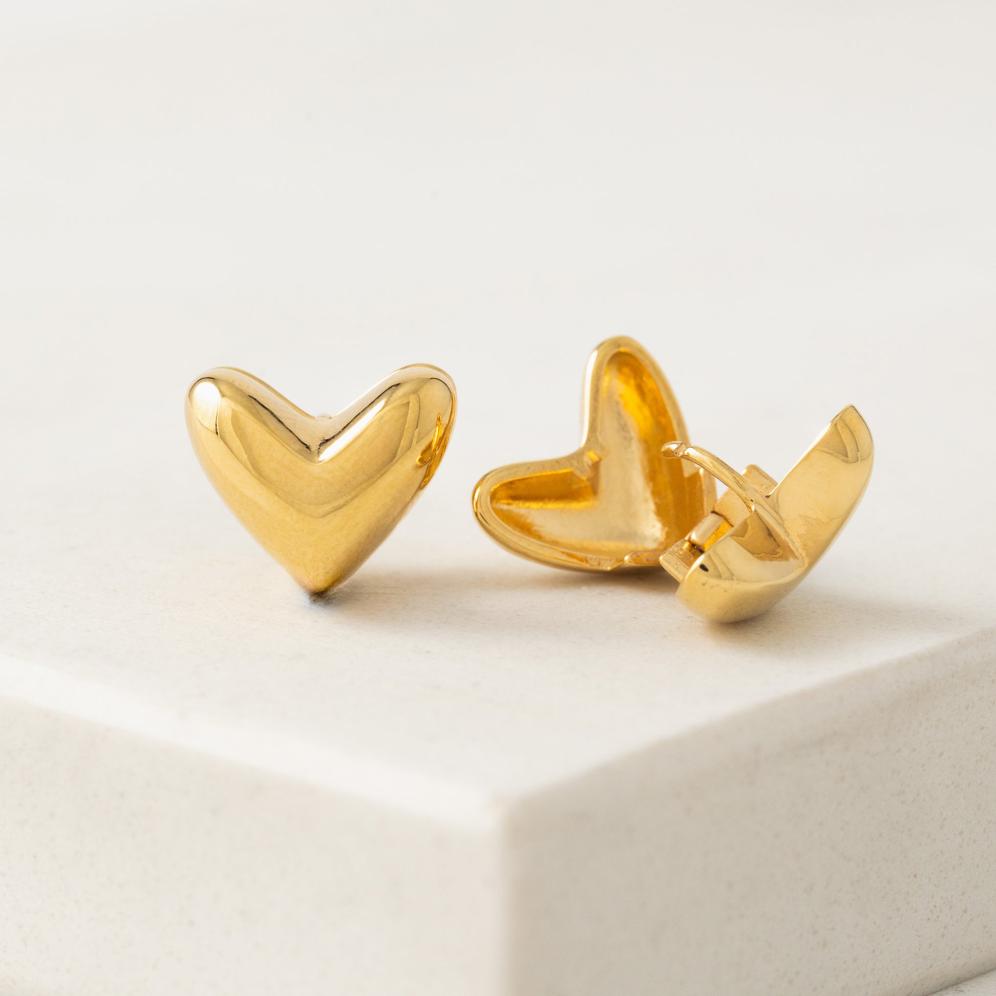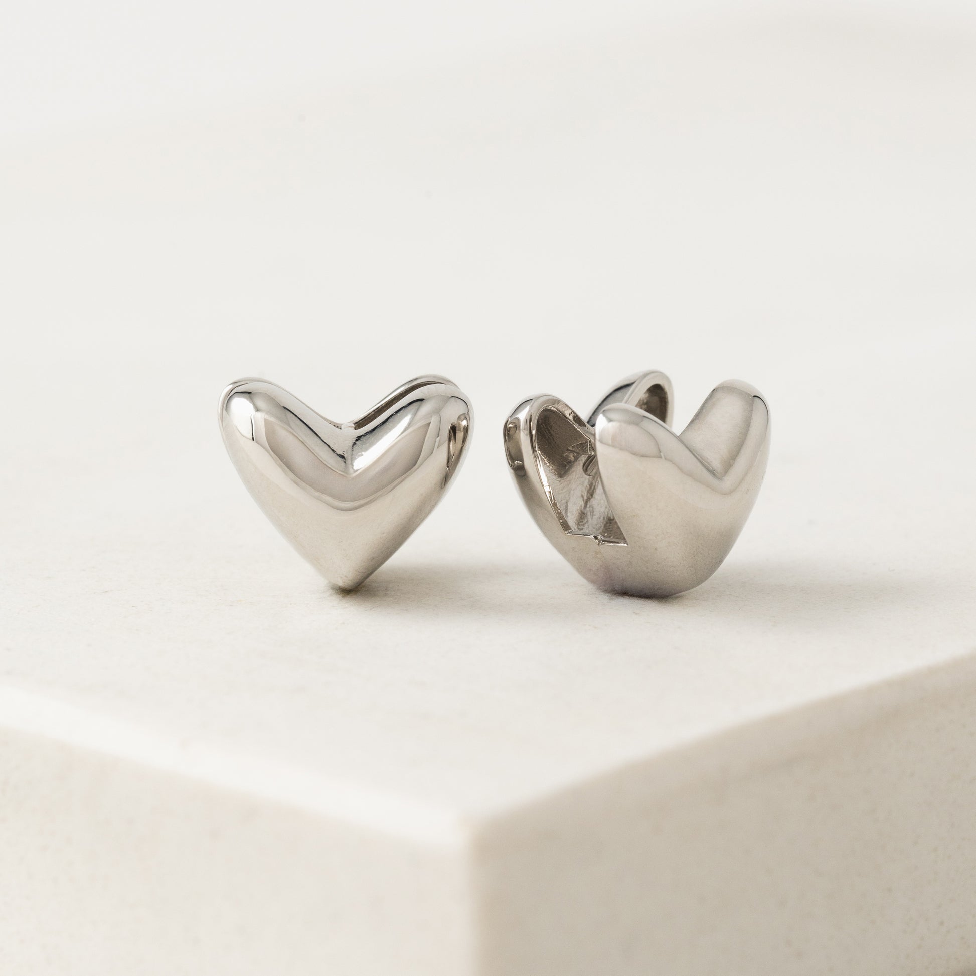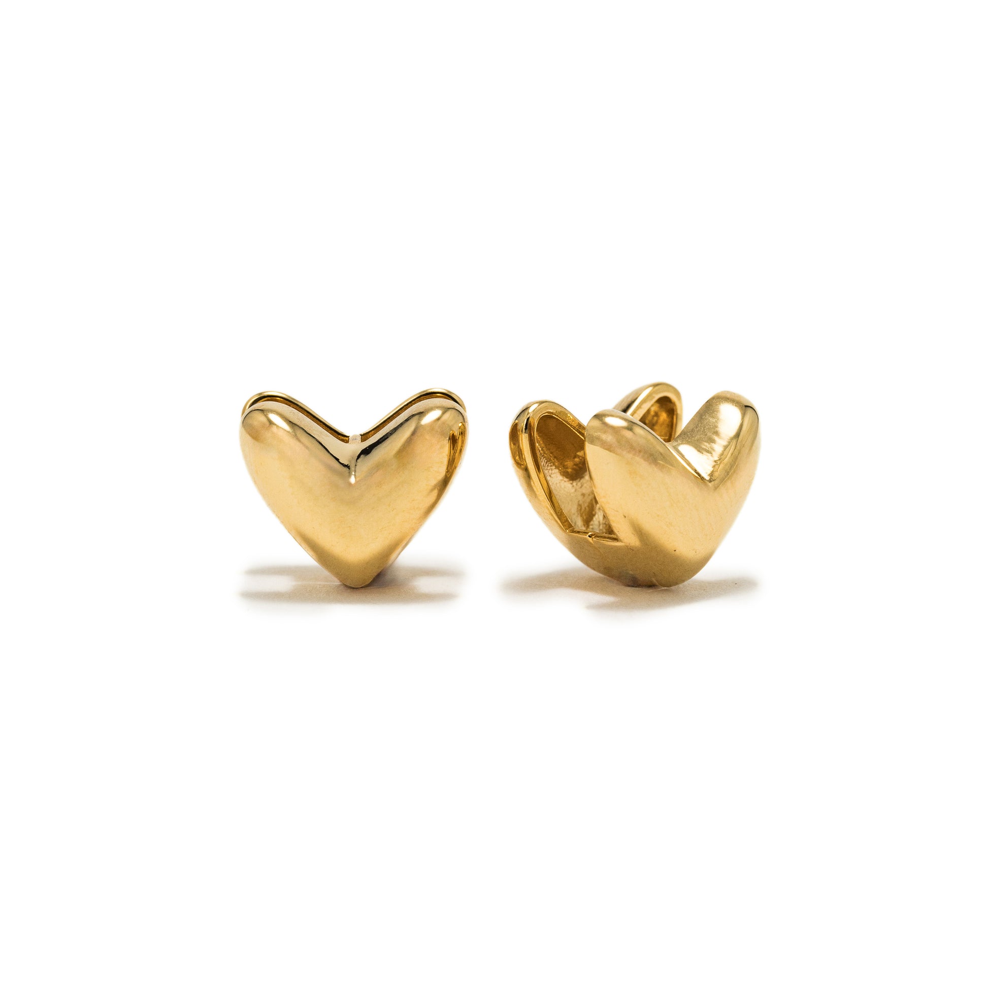 Downright delightful, adorn these shiny heart hoops to puff up your personality.