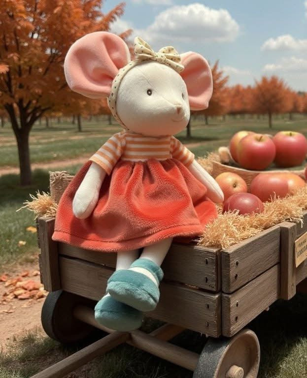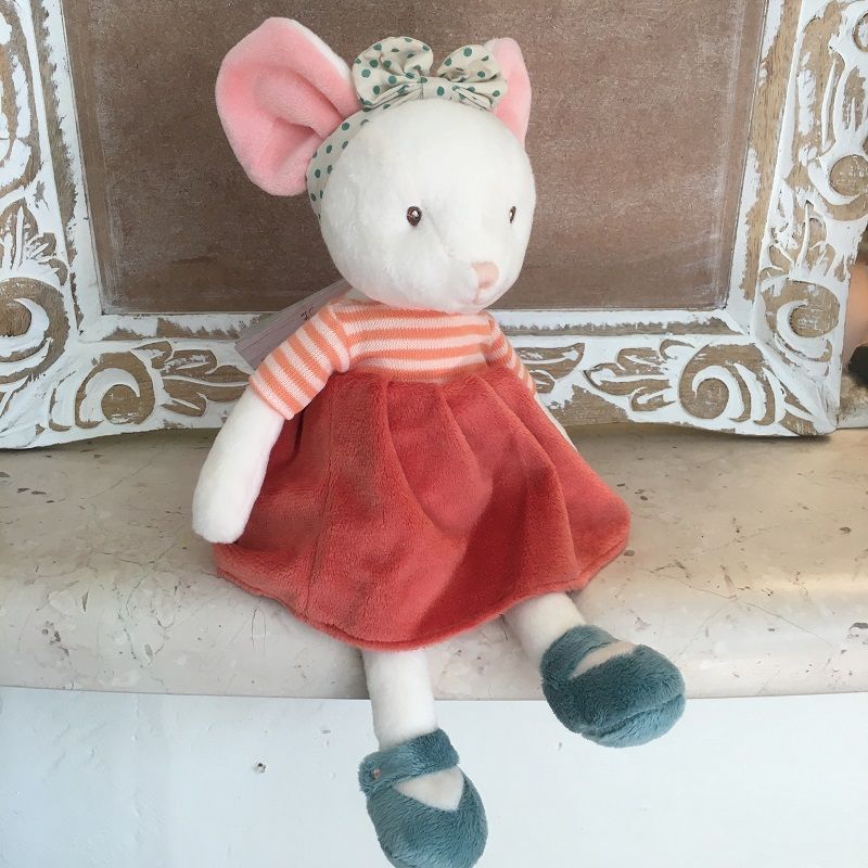 Ingefrid is the cutest playtime companion. Being a mouse, she loves to scurry around and make new friends! She wears a velvet orange skirt and a polka dot bow, leaving her ready for any occasion. Ingefrid has stitched eyes, making her great for infants.