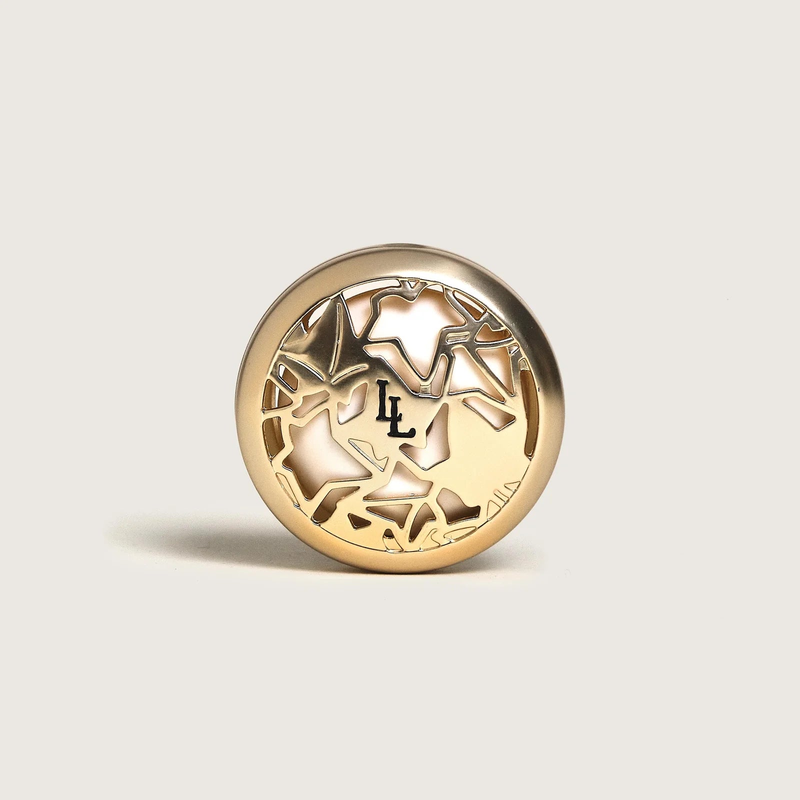 Travel in style with this golden car diffuser, featuring the Lolita Lempicka Sweet fragrance with cherry, raspberry and praline notes.