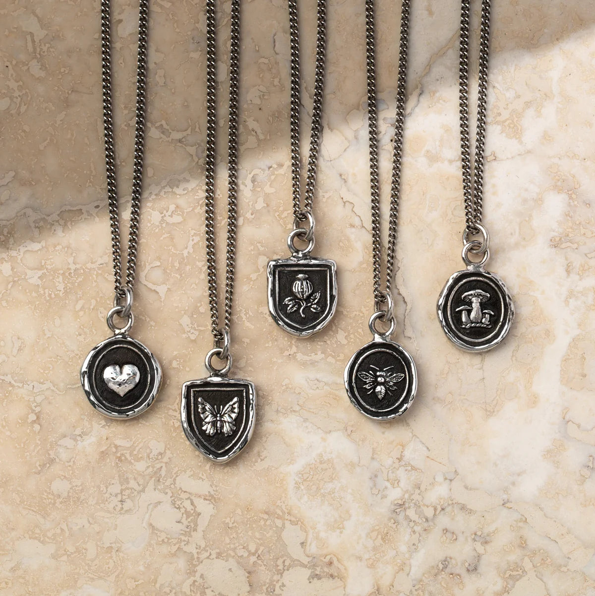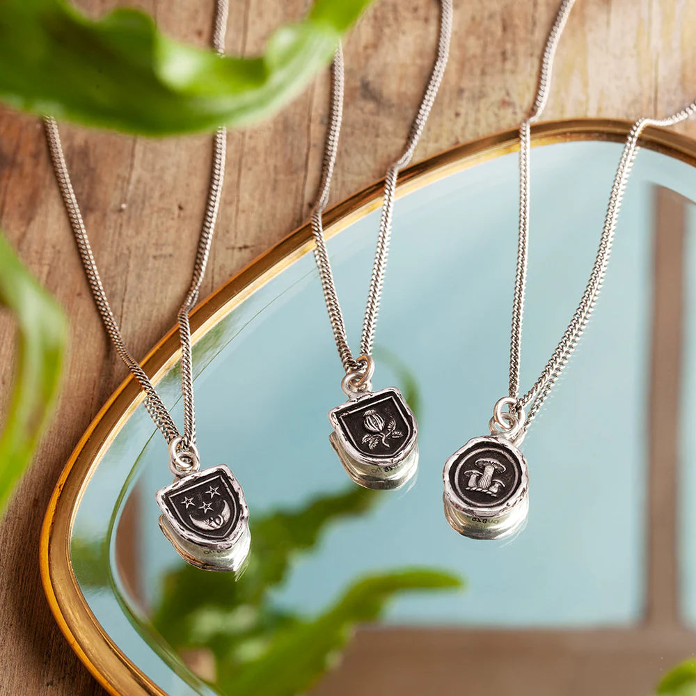 - Sterling silver or bronze talisman on a sterling silver chain