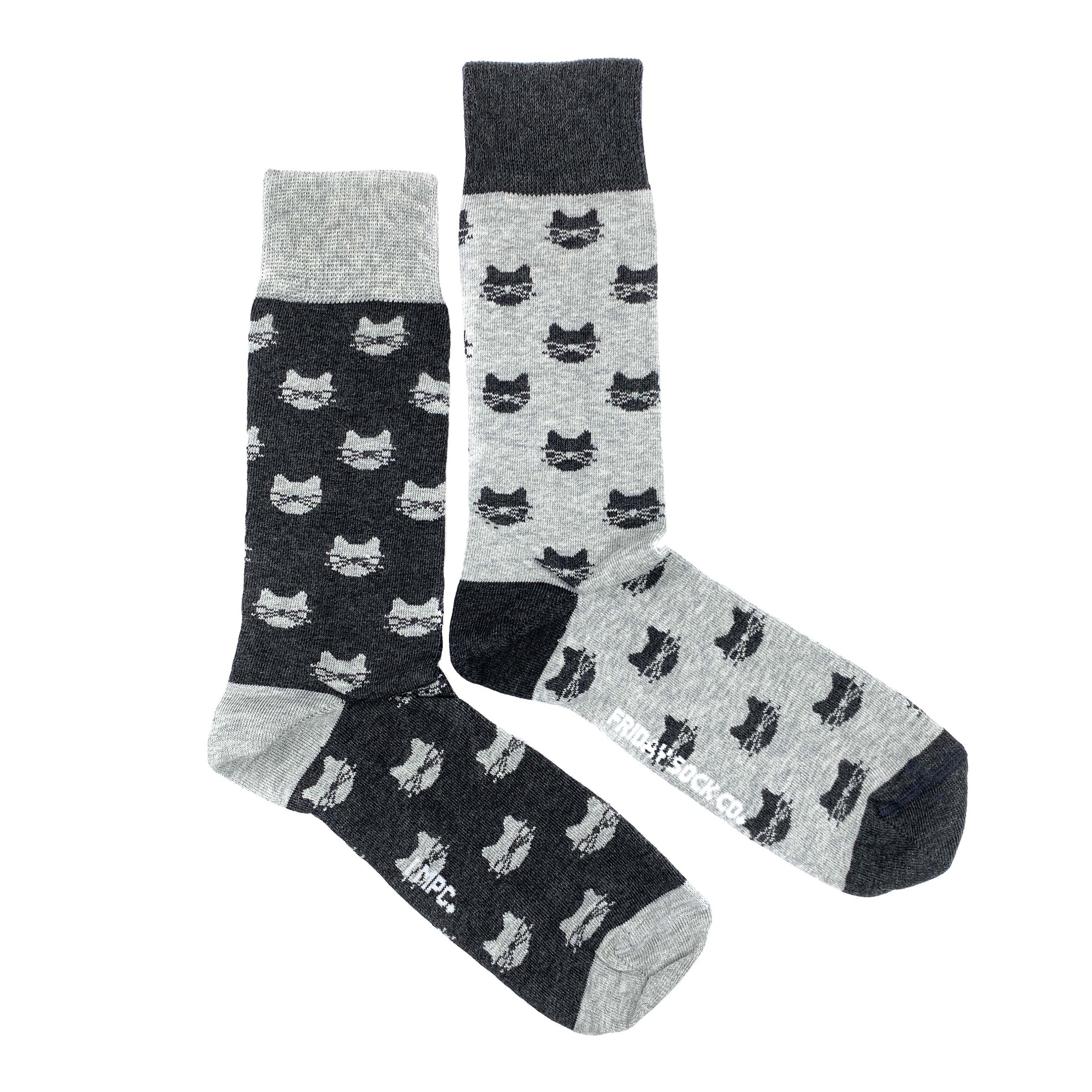 Feline fine in Men's Inverted Grey Cat Mismatched Socks. You might even say they're paw-some.
