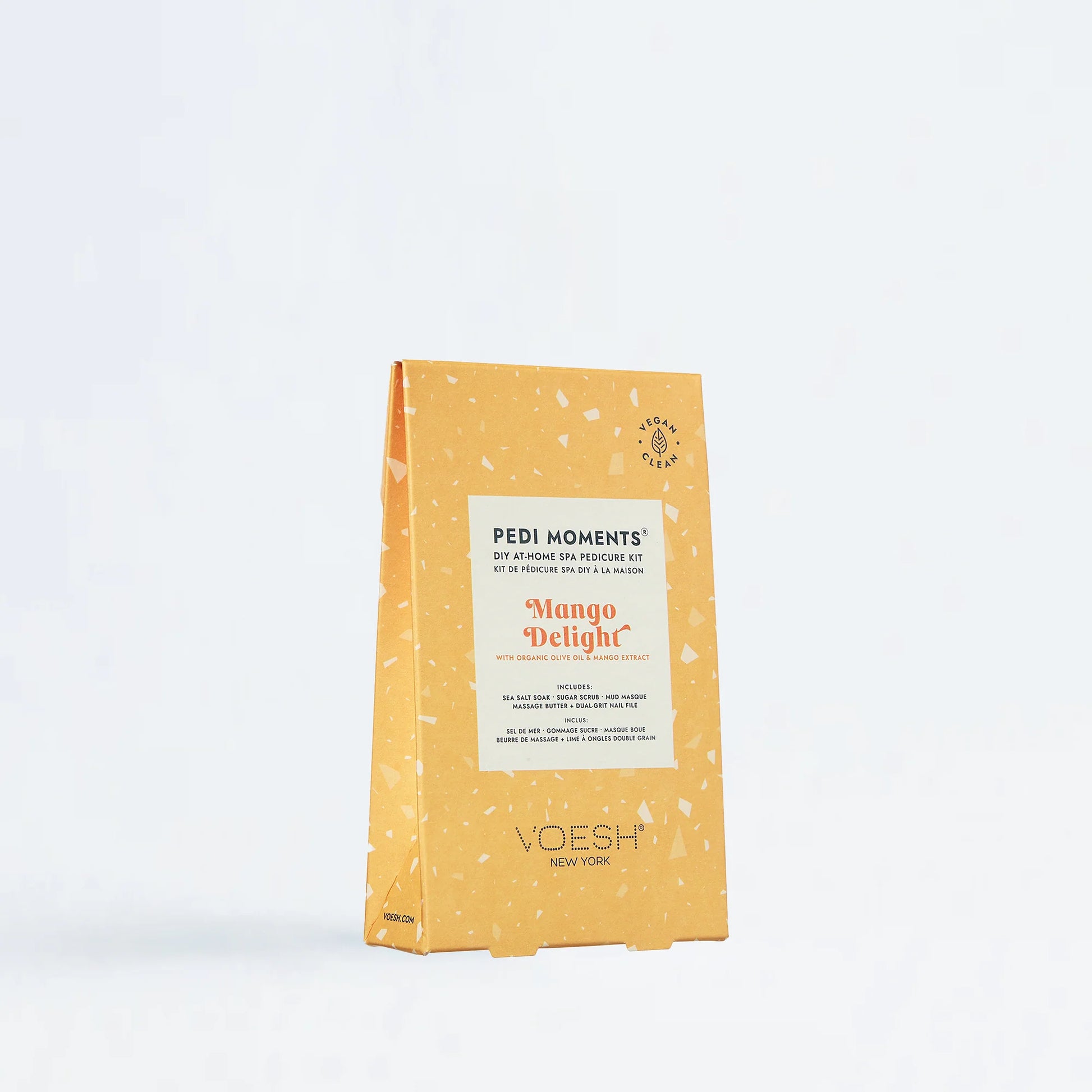 Give your feet the care they deserve with the Pedi Moments Mango Delight Kit - a complete at-home pedicure experience. This set includes a mango-scented pedicure kit and a dual-grit nail file for effortless nail care.