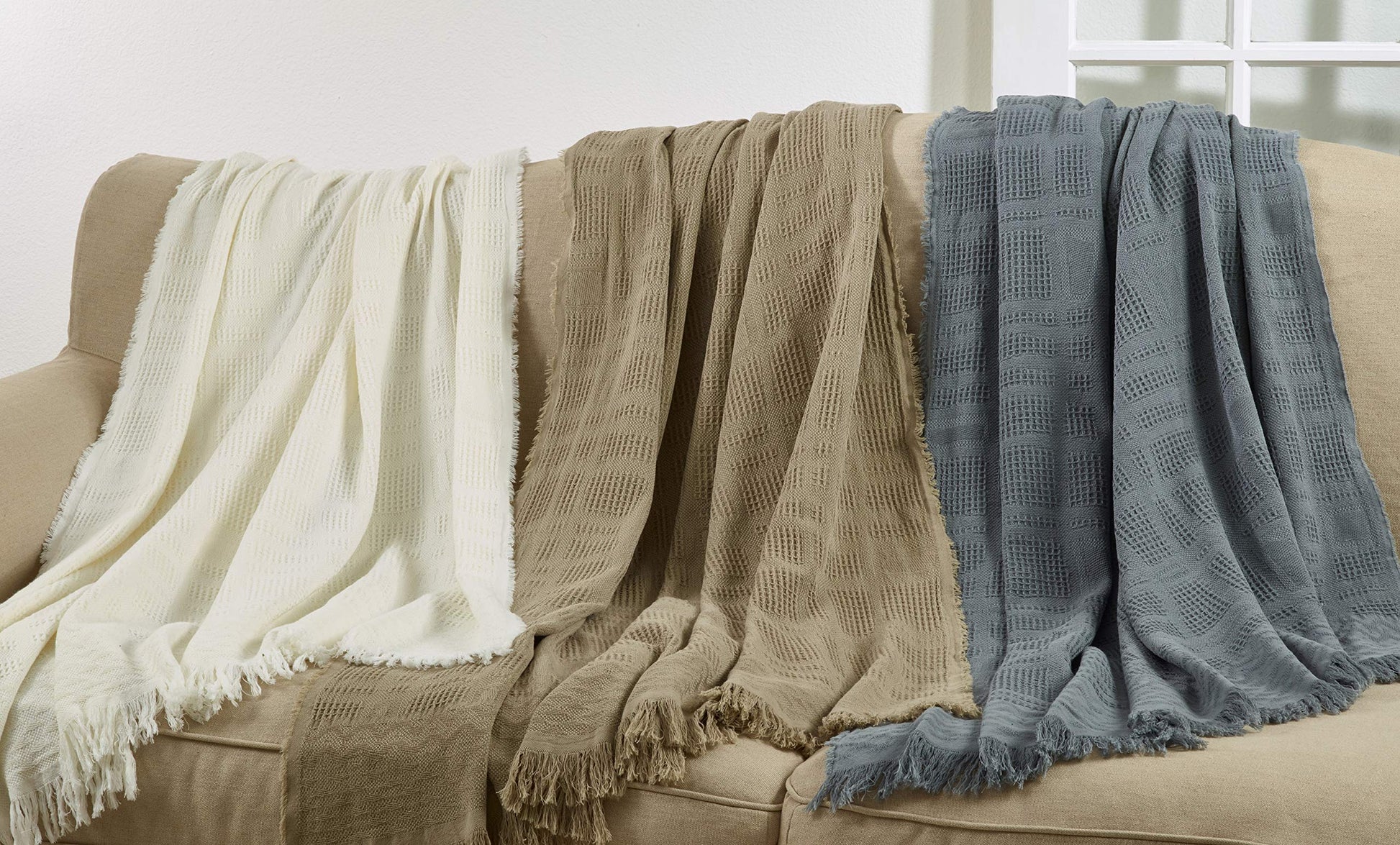 Ivory Cross Hatch Waffle Weave Throw